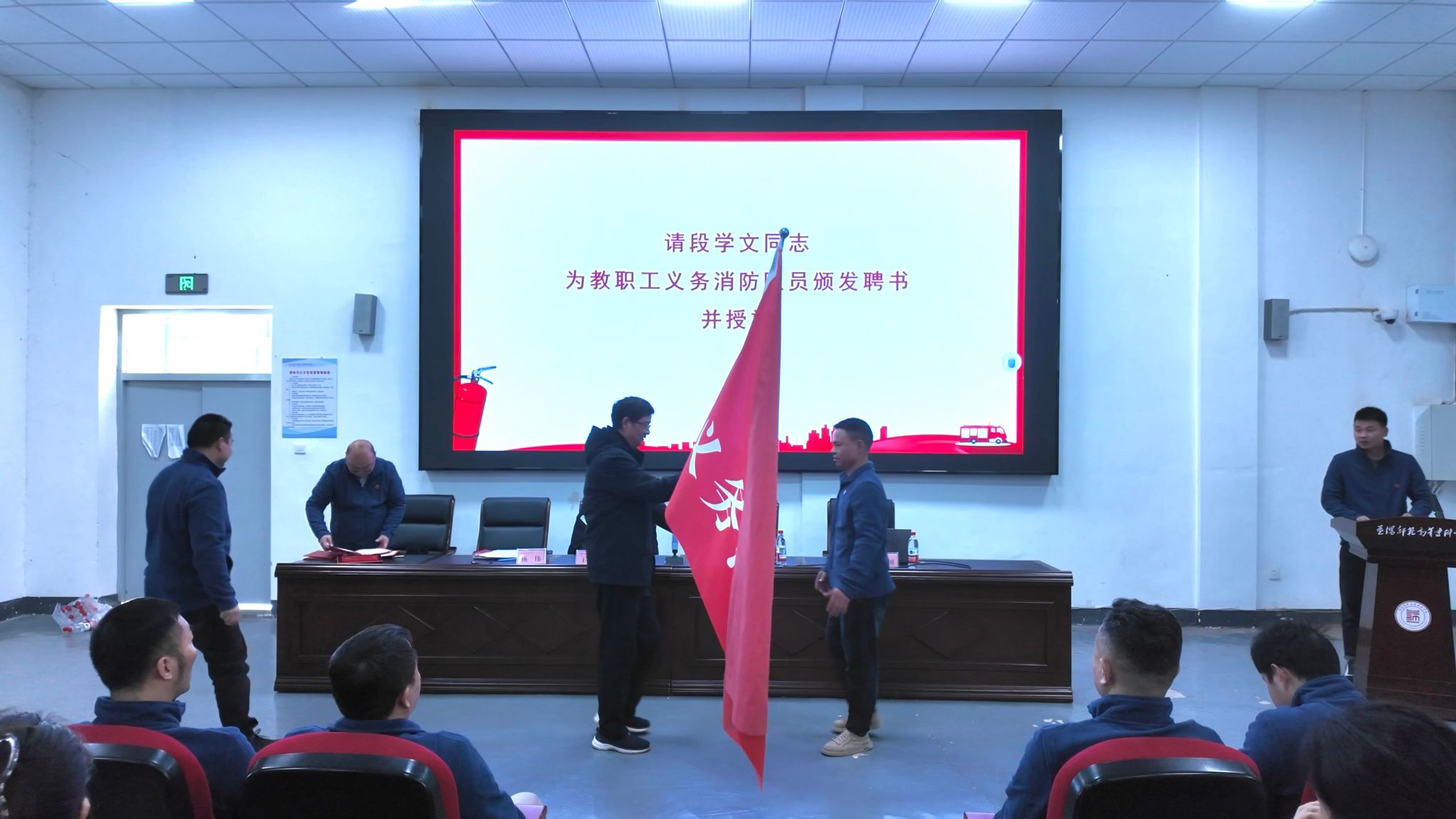 报告厅内座无虚席,教职工齐聚一堂,共同见证这一时刻。保卫处负责人强调:“校园安全是教育工作的底线,义务消防队的成立是我校完善安全防控体系的重要举措。”这番话让在场每个人都感受到了学校对安全工作的高度重视。