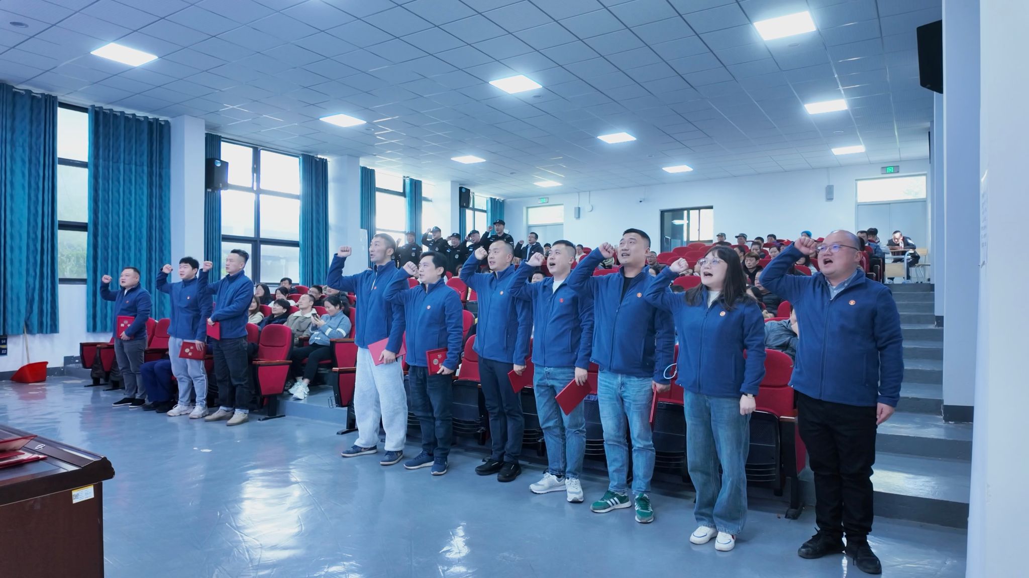 在队长游金龙的带领下,全体队员庄严宣誓:“我志愿加入教职工义务消防队……”铿锵誓言回荡会场,传递出守护校园安全的坚定决心。